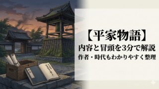軍記 平家物語の内容と作者・時代を解説。最強だった一門が「終わる日」を描いた理由とは 武士の時代への転換点となった源平合戦の全貌を整理。平家一門がなぜ滅びたのか、物語の設計図である冒頭の一節から読み解きます。作者や成立時期、主要な登場人物の運命まで。初めて読む人でも、作品全体に流れる「人の世の移ろい」が深く理解できます。 2026.03.18 軍記