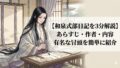 - まず全体像から:作品名だけで終わらず、内容・作者・時代・冒頭を最初に整理します。
